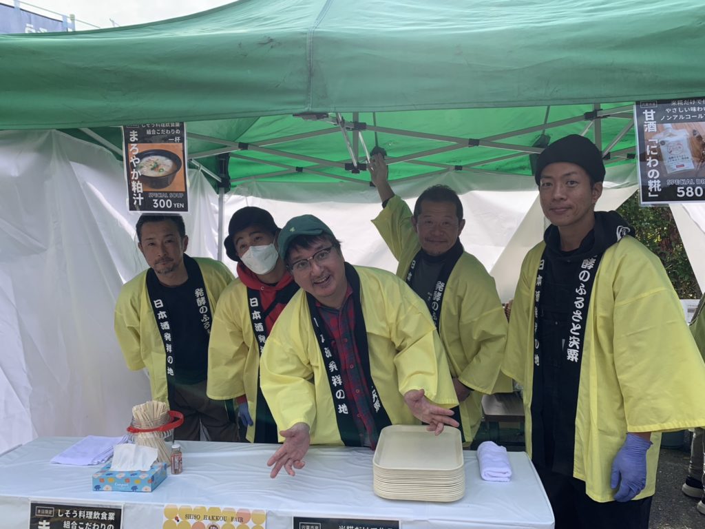 宍粟発酵のまちづくり推進協議会との共催イベントとして、PRのため11月24日(月・祝)の一日限定で遠方からも沢山の観光客が訪れる【最上山もみじ祭り】にて[全糀甘酒の試飲・販売]と[まろやか粕汁]を販売し、粕汁は予定の500食を完売いたしました。
